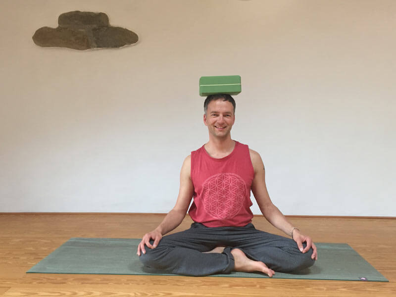 2.4 Yoga Kopfstand Vorübung: Bequeme Sitzhaltung und Block auf dem Kopf